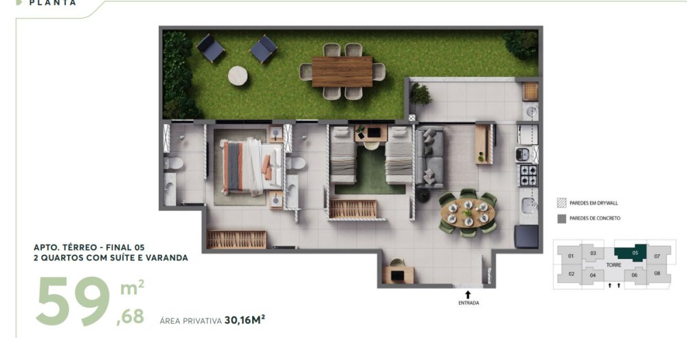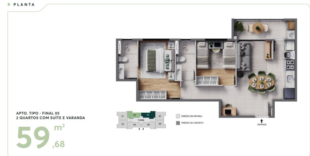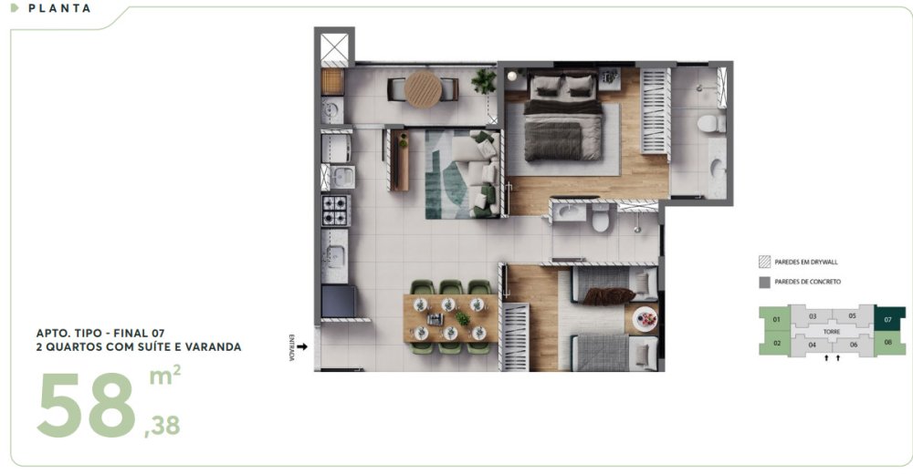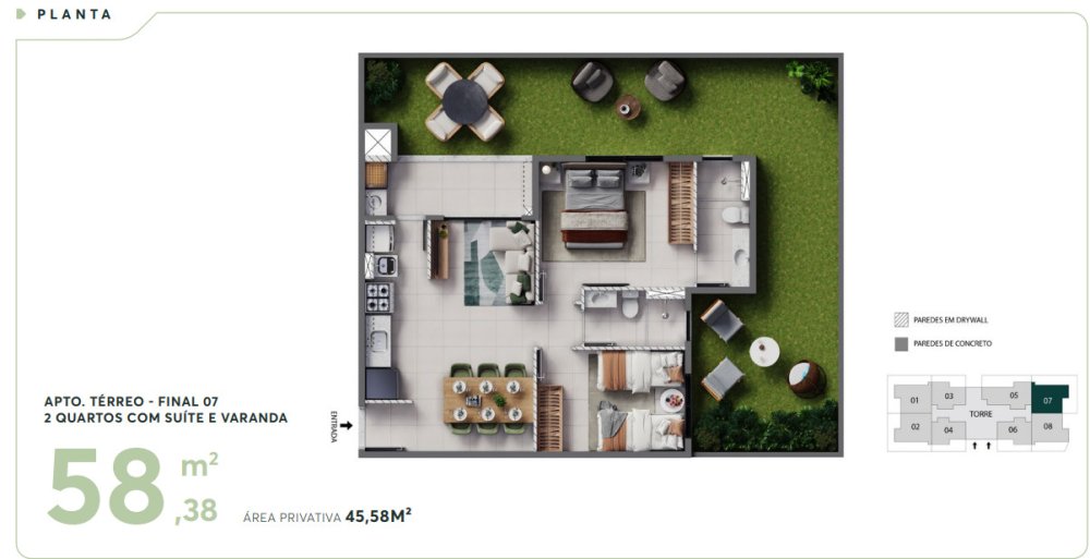 • Área Privativa: 45,58 m²