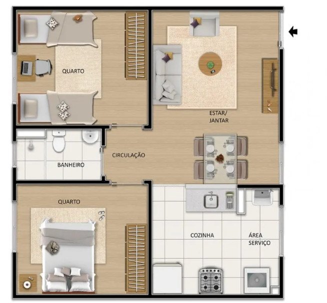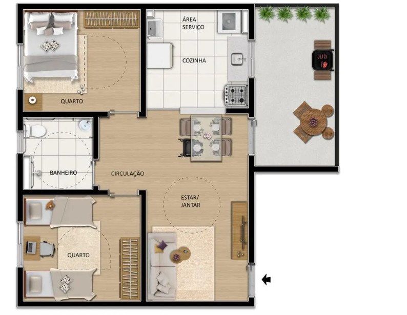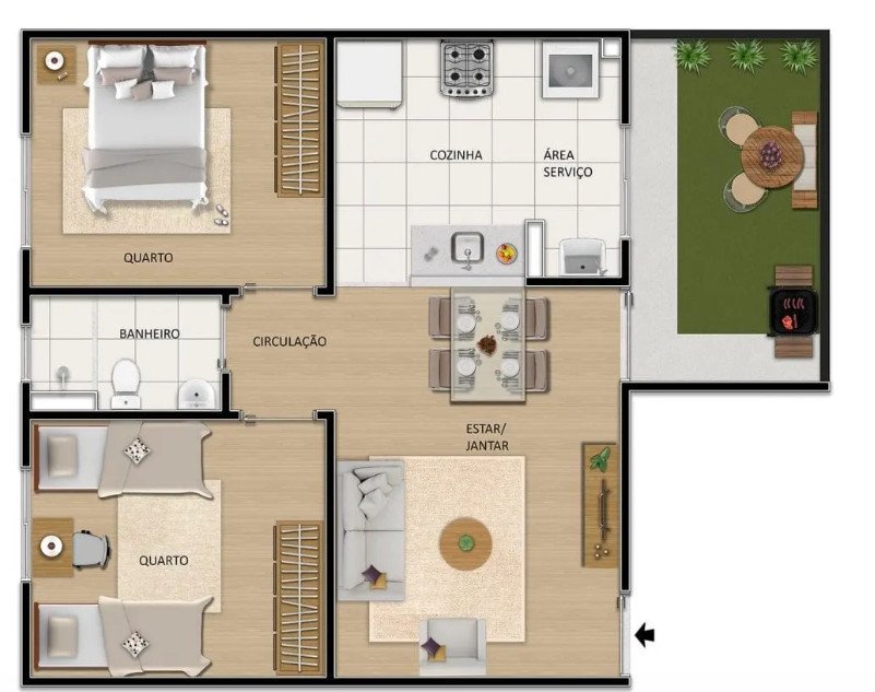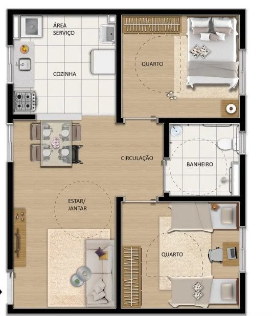 Os apartamentos possuem 2 quartos e os moradores desfrutam de um lazer completo, entregue totalmente mobiliado e decorado, ideal para proporcionar momentos de diversão e bem-estar para toda a família.